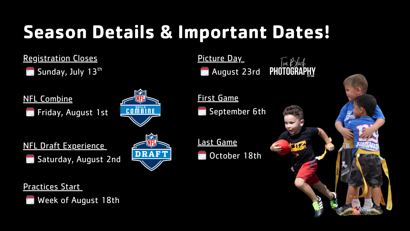 Each child will receive a team shirt, and teams will have a one-hour session each Saturday morning. The session will include a 30-minute practice followed by a 30-minute game, with two 12-minute halves. This league is a fantastic way for your child to develop coordination, sportsmanship, and a love for the game in a supportive and engaging environment.